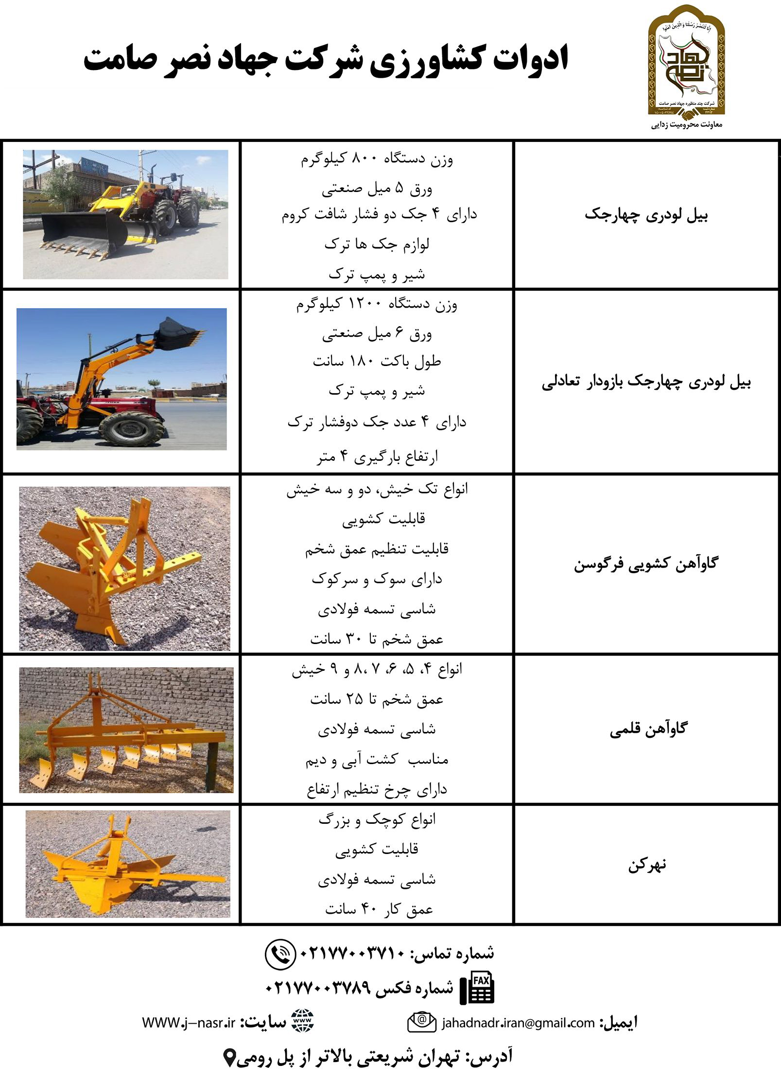 کشاورزی مدرن برای افزایش بهرهوری و کاهش هزینههای تولید نیازمند ابزارها و تجهیزات پیشرفتهای است که عملیات مختلف کشاورزی را تسهیل کند. شرکت جهاد نصر صامت با ارائه محصولات متنوع و باکیفیت، نقش بسزایی در مکانیزاسیون کشاورزی دارد. در ادامه برخی از این محصولات معرفی میشوند.