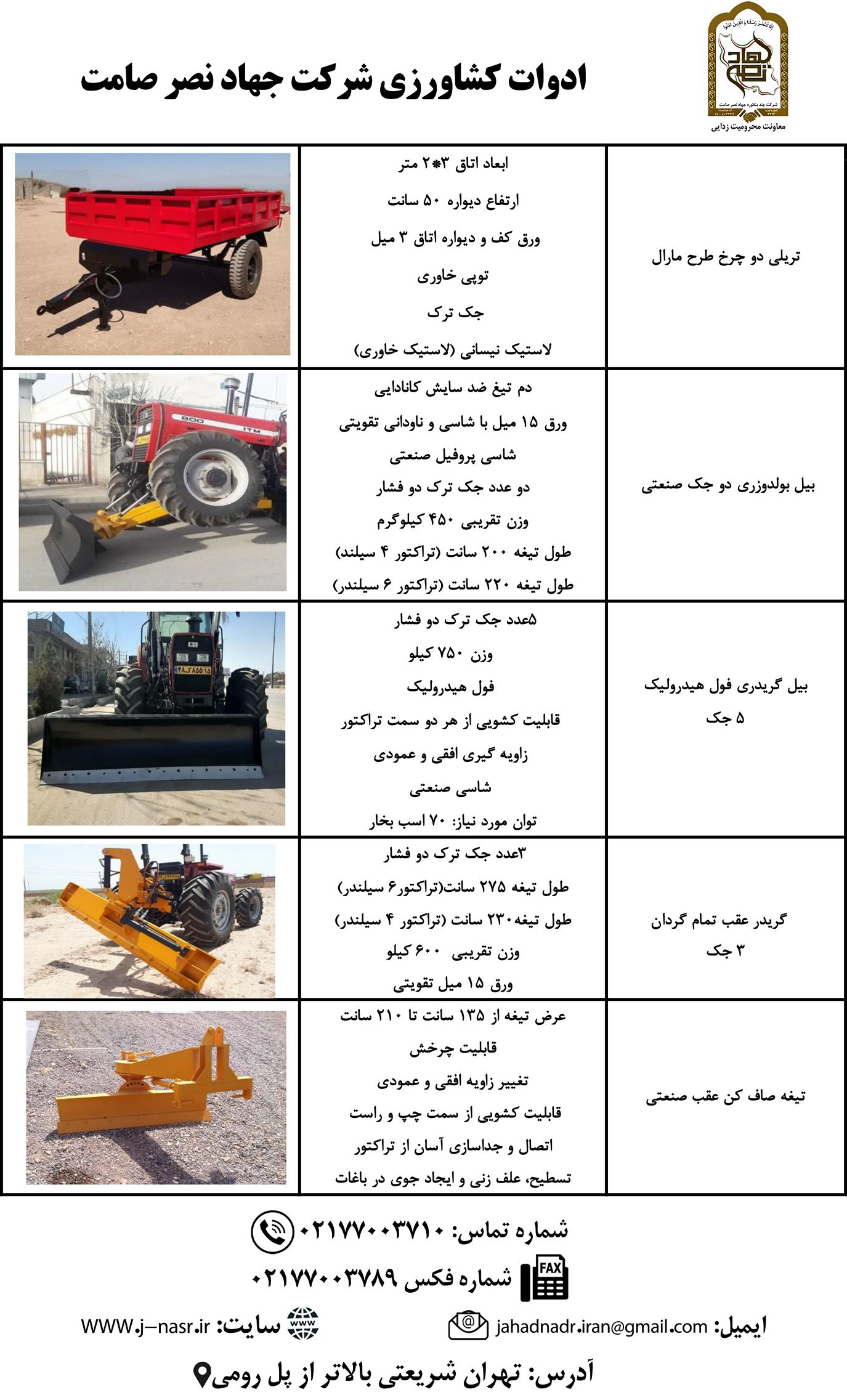 توسعه کشاورزی بهعنوان یکی از مهمترین بخشهای اقتصادی و تأمین مواد غذایی، نیازمند استفاده از تجهیزات و فناوریهای پیشرفته است. شرکت جهاد نصر صامت، بهعنوان یکی از تولیدکنندگان پیشرو در زمینه ادوات کشاورزی، محصولات متنوعی را برای بهبود بهرهوری و کاهش هزینههای کشاورزی ارائه میدهد.